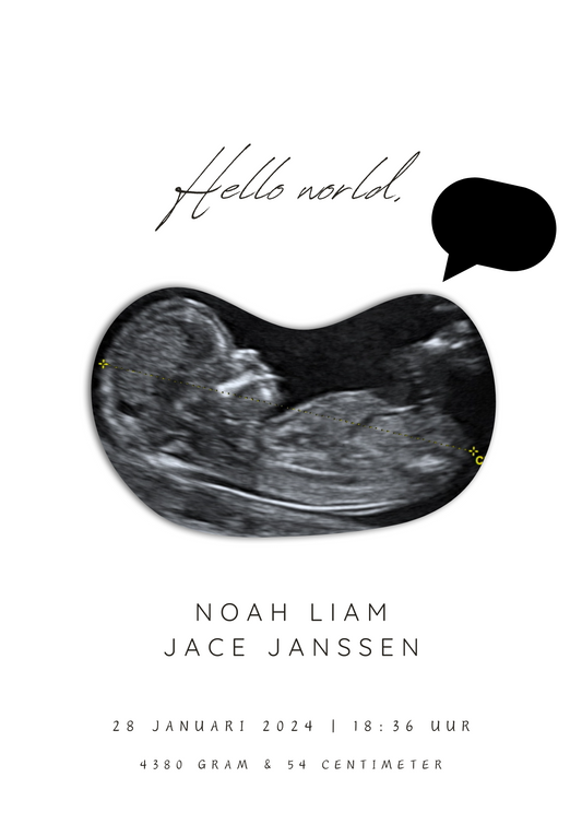 Onze gepersonaliseerde echo posters koesteren een prachtige ervaring op een unieke manier. Met deze poster maak je een blijvende herinnering van de echo foto van jullie kleintje.