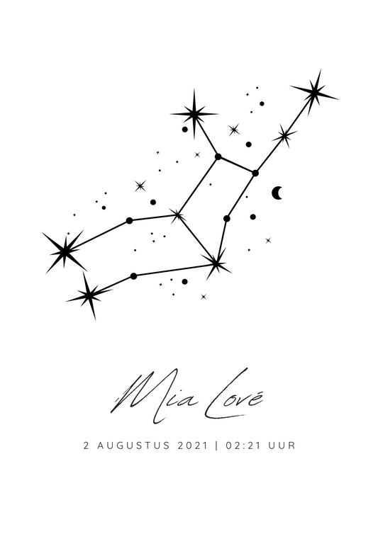 Een geboorteposter is een echte musthave voor je baby. Plaats deze mooie herinnering in de slaapkamer van je pasgeboren baby. Personaliseer de poster met de voornaam en tweede naam of voornaam en achternaam, datum en tijdstip van de geboorte van je kleintje.
